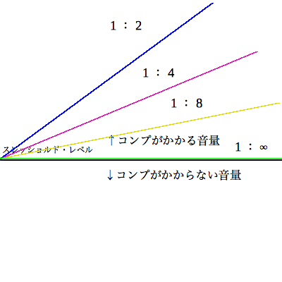 レシオは音量がスレッショルド・レベル以上になった時に