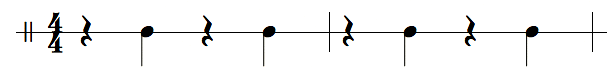クリックは2拍目、4拍目に鳴らし足のカウントも2拍目、4拍目でリズムをとって下さい。